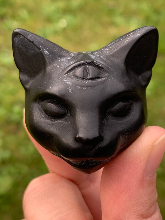Tête chat mystique obsidienne