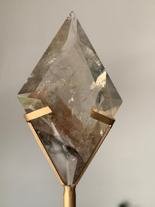 Quartz fumé + Lodolite sur socle