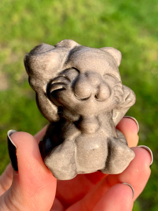 Maneki Neko Obsidiana Plateada